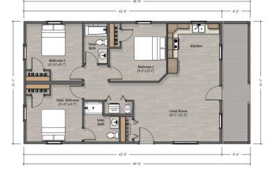 The bedrooms in this model are all on the same end of the cabin with the great room and deck on the other end.